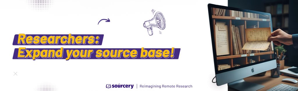 In addition to increasing the number of archives within reach, Sourcery also creates a new way to explore collections before committing resources to a more in-depth research trip or the challenging process of finding and hiring a local research assistant. If the archivist can provide insights but not scans, you can request a folder or two to start, and if you like what you see you can move forward with greater confidence.