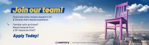 Help Sourcery get better and get paid doing it! We’re currently recruiting for two positions: Are you an early career archivist or librarian? A current MLS/PhD/MS/MA student or recent graduate? Or maybe just passionate about archives, libraries, and the digital…